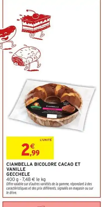 Actuellement en offre chez Intermarché Hyper : GECCHELE Ciambella bicolore cacao et vanille ✅ Valable du 20-01 au 25-01.
