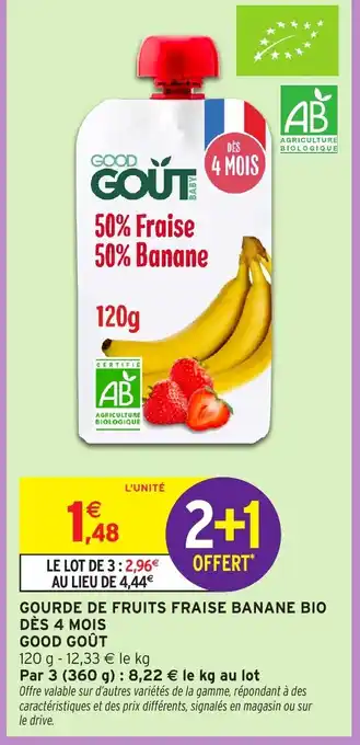 Offre Good Goût Gourde de fruits fraise banane bio dès 4 mois chez Intermarché Hyper