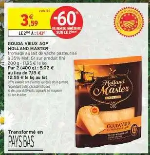 Actuellement en offre chez Intermarché Hyper : GOUDA VIEUX AOP HOLLAND MASTER ✅ Valable du 3-02 au 15-02.