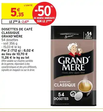 Offre Grand'Mère Dosettes de café classique chez Intermarché Hyper
