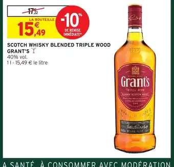Offre GRANT'S Scotch whisky blended triple wood chez Intermarché Hyper