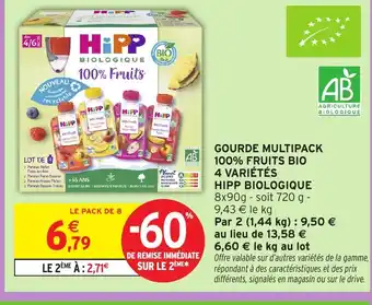 HIPP BIOLOGIQUE Gourde multipack 100% fruits bio 4 variétés : offres et promos Intermarché Hyper à découvrir