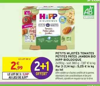 Offre HIPP BIOLOGIQUE Petits mijotés tomates petites pâtes jambon bio chez Intermarché Hyper