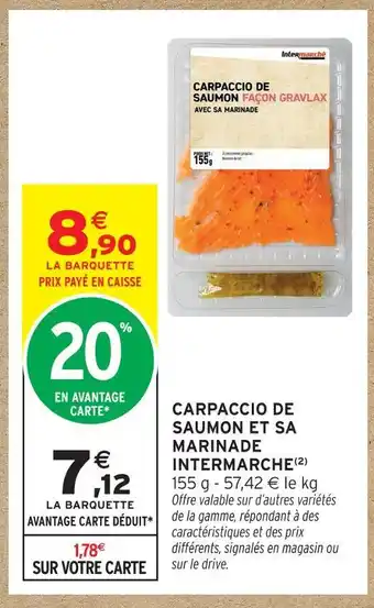 Actuellement en offre chez Intermarché Hyper : Intermarché carpaccio de saumon façon gravlax avec sa marinade ✅ Valable du 14-04 au 26-04.