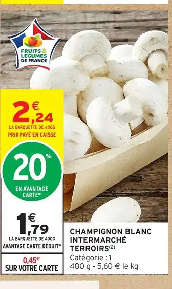 Actuellement en offre chez Intermarché Hyper : INTERMARCHÉ TERROIRS Champignon blanc ✅ Valable du 17-02 au 1-03.