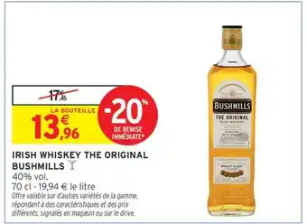 Offre IRISH WHISKEY THE ORIGINAL BUSHMILLS chez Intermarché Hyper
