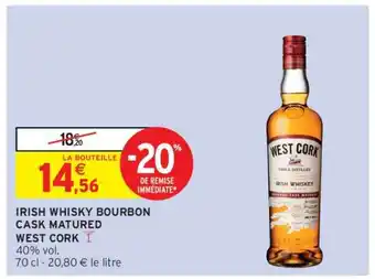 Actuellement en offre chez Intermarché Hyper : IRISH WHISKY BOURBON CASK MATURED WEST CORK ✅ Valable du 10-03 au 22-03.