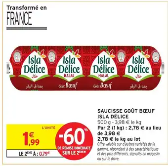 Actuellement en offre chez Intermarché Hyper : ISLA DÉLICE Saucisse goût bœuf ✅ Valable du 3-02 au 22-02.