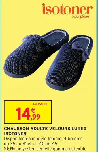 Actuellement en offre chez Intermarché Hyper : Isotoner chausson adulte velours lurex ✅ Valable du 20-01 au 1-02.