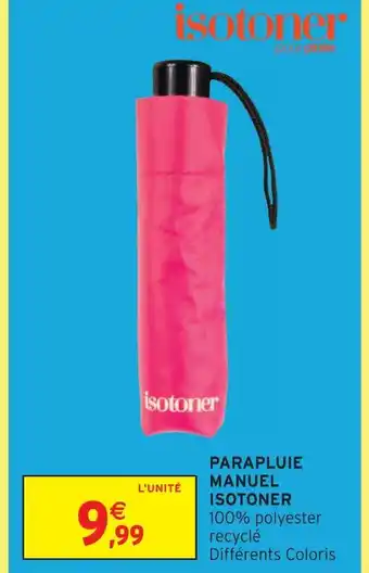 Actuellement en offre chez Intermarché Hyper : Isotoner parapluie manuel ✅ Valable du 20-01 au 1-02.