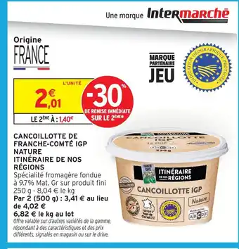 Actuellement en offre chez Intermarché Hyper : Itinéraire de nos régions cancoillotte de franche-comté igp nature ✅ Valable du 20-01 au 1-02.