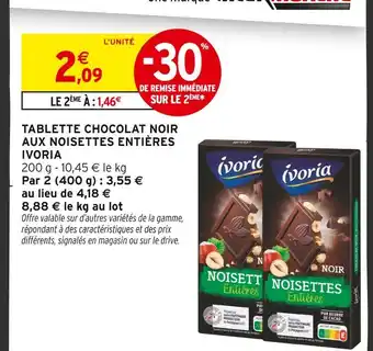 Offre Ivoria tablette chocolat noir aux noisettes entières chez Intermarché Hyper
