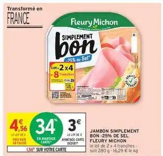 Jambon Simplement Bon -25% de Sel Fleury Michon : offres et promos Intermarché Hyper à découvrir