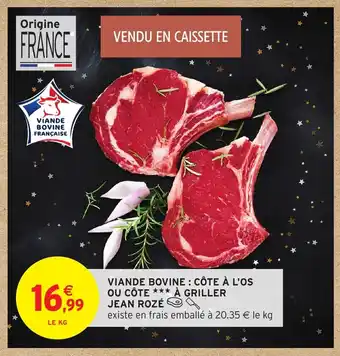 Actuellement en offre chez Intermarché Hyper : JEAN ROZÉ Viande bovine : côte à l'os ou côte à griller ✅ Valable du 16-12 au 28-12.