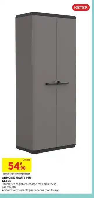 Actuellement en offre chez Intermarché Hyper : KETER Armoire haute piu ✅ Valable du 17-02 au 1-03.