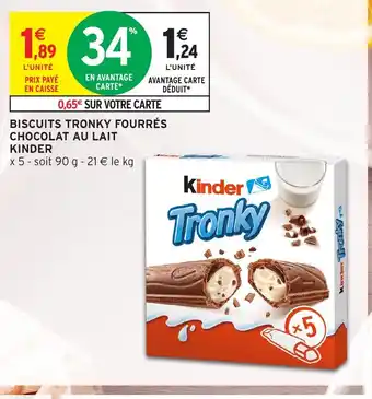 KINDER Biscuits tronky fourrés chocolat au lait : offres et promos Intermarché Hyper à découvrir