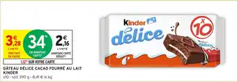 KINDER Gâteau délice cacao fourré au lait 390 g
