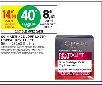 Actuellement en offre chez Intermarché Hyper : L'OREAL REVITALIFT Soin anti-âge jour laser ✅ Valable du 16-12 au 28-12.