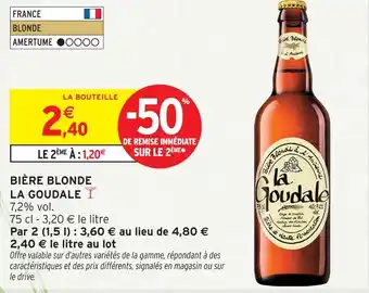 En plus de l'offre La goudale bière blonde, Intermarché Hyper propose une large gamme de produits. Consultez le Catalogue Intermarché Drive hebdomadaire pour découvrir les meilleures offres et promotions. En plus de La goudale bière blonde, il y a aussi : La goudale bière blonde, La goudale bière blonde & La goudale bière blonde.