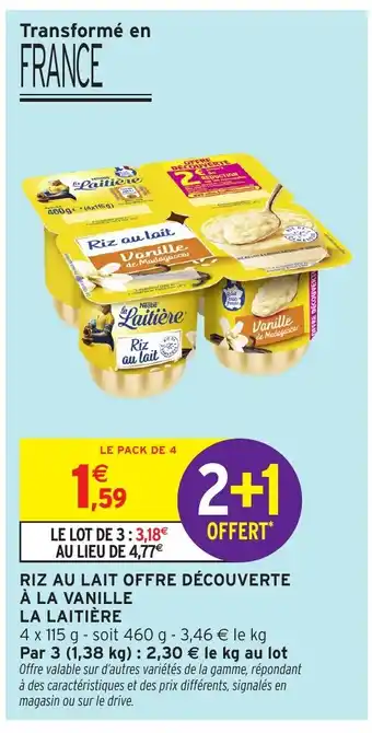 LA LAITIÈRE Riz au lait offre découverte à la vanille offres et promotions en ligne chez Intermarché Hyper