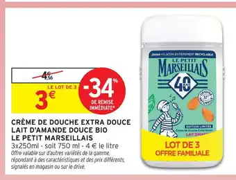 En plus de l'offre Le petit marseillais crème de douche extra douce lait d'amande douce bio, Intermarché Hyper propose une large gamme de produits. Consultez le Catalogue Intermarché Hyper hebdomadaire pour découvrir les meilleures offres et promotions. En plus de Le petit marseillais crème de douche extra douce lait d'amande douce bio, il y a aussi : Le petit marseillais crème de douche extra douce lait d'amande douce bio, Le petit marseillais - crème de douche extra douce lait d'amande douce bio & CRÈME DE DOUCHE EXTRA DOUCE LAIT D'AMANDE DOUCE BIO LE PETIT MARSEILLAIS.