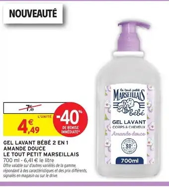 Le Tout Petit Marseillais Gel lavant corps & cheveux amande douce offres et promotions en ligne chez Intermarché Hyper