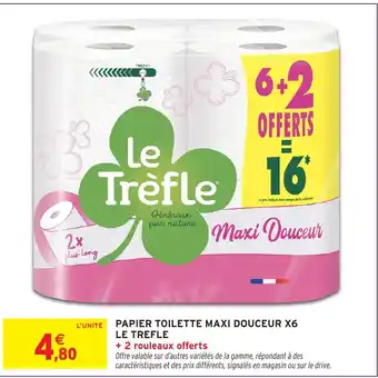 Offre LE TREFLE Papier toilette maxi douceur x6 chez Intermarché Hyper