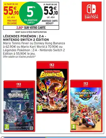 Actuellement en offre chez Intermarché Hyper : Légendes pokémon : z-a - nintendo switch 2 édition ✅ Valable du 10-02 au 22-02.