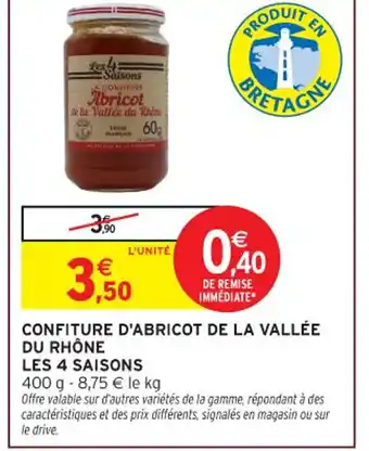LES 4 SAISONS Confiture d'abricot de la vallée du rhône : offres et promos Intermarché Hyper à découvrir