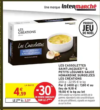 LES CRÉATIONS Les cassolettes saint-jacques & petits légumes sauce homardine surgelées : offres et promos Intermarché Hyper à découvrir