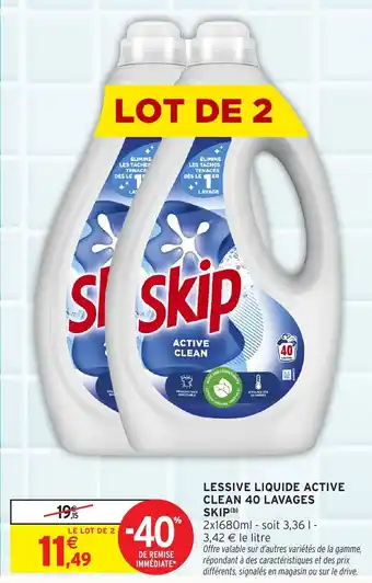Offre Lessive liquide active clean 40 lavages skip chez Intermarché Hyper