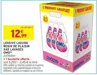 Actuellement en offre chez Intermarché Hyper : LESSIVE LIQUIDE ROSIR DE PLAISIR X42 LAVAGES OMO ✅ Valable du 27-01 au 8-02.