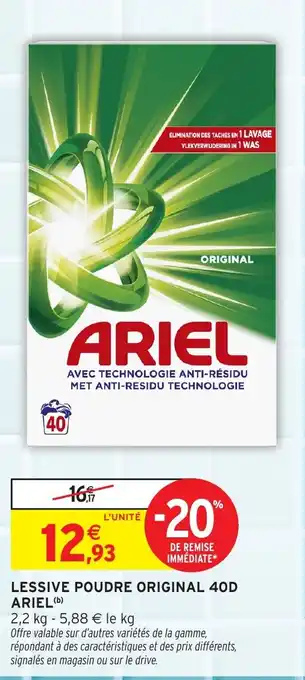 Actuellement en offre chez Intermarché Hyper : Lessive poudre original 40d ariel ✅ Valable du 30-12 au 11-01.