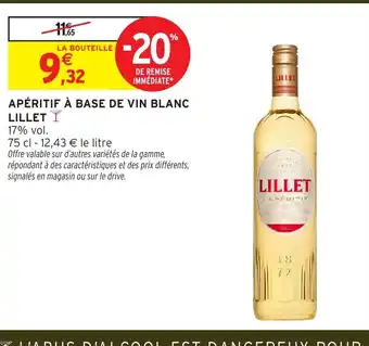 Actuellement en offre chez Intermarché Hyper : LILLET Apéritif à base de vin blanc ✅ Valable du 16-12 au 28-12.