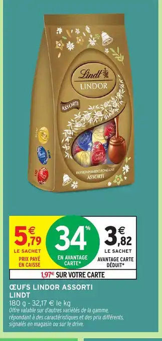 Actuellement en offre chez Intermarché Hyper : LINDT Œufs lindor assorti ✅ Valable du 17-03 au 29-03.