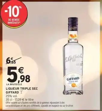 Offre LIQUEUR TRIPLE SEC GIFFARD chez Intermarché Hyper