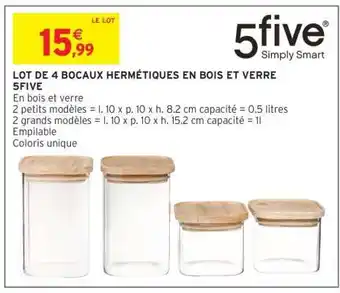 Lot de 4 bocaux hermétiques en bois et verre 5Five : offres et promos Intermarché Hyper à découvrir
