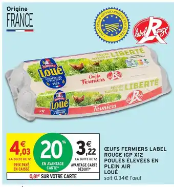 Actuellement en offre chez Intermarché Hyper : Loué Œufs fermiers label rouge igp x12 poules élevées en plein air ✅ Valable du 8-04 au 19-04.