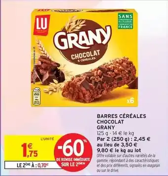 Offre Lu - barres céréales chocolat chez Intermarché Hyper