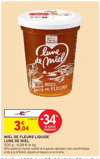 Actuellement en offre chez Intermarché Hyper : LUNE DE MIEL Miel de fleurs liquide ✅ Valable du 10-02 au 22-02.