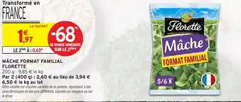 Le prix de l'offre Mâche format familial florette se trouve également en haut de la page, ainsi que la date à laquelle l'offre est disponible. Vous pouvez également vérifier les prix dans le Catalogue Intermarché Hyper actuel ou sur le site Internet de Intermarché Hyper. Les offres vous permettent d'acheter les produits Intermarché Hyper au prix le plus bas.