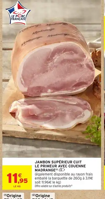 Actuellement en offre chez Intermarché Hyper : Madrange Jambon supérieur cuit le primeur avec couenne ✅ Valable du 8-04 au 19-04.