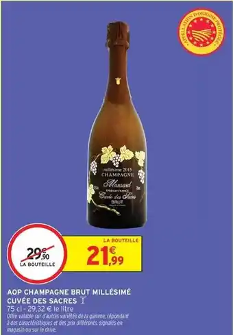 Mansard - aop champagne brut millesime cuvée des sacres offres et promotions en ligne chez Intermarché Hyper
