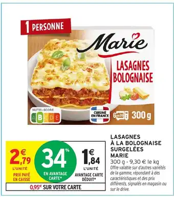 MARIE Lasagnes à la bolognaise surgelées offres et promotions en ligne chez Intermarché Hyper