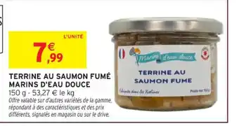 Actuellement en offre chez Intermarché Hyper : MARINS D'EAU DOUCE Terrine au saumon fumé ✅ Valable du 17-02 au 1-03.