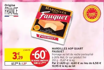 Actuellement en offre chez Intermarché Hyper : MAROILLES AOP QUART FAUQUET ✅ Valable du 21-04 au 3-05.