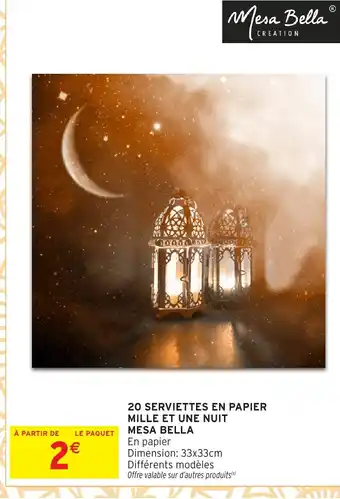 MESA BELLA 20 serviettes en papier mille et une nuit offres et promotions en ligne chez Intermarché Hyper