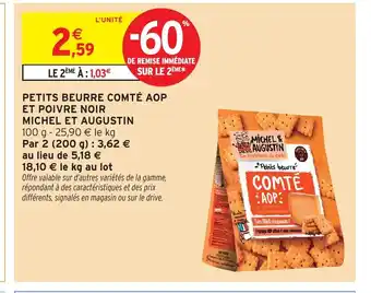 Actuellement en offre chez Intermarché Hyper : MICHEL ET AUGUSTIN Petits beurre comté aop et poivre noir ✅ Valable du 3-03 au 15-03.