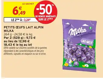 Actuellement en offre chez Intermarché Hyper : MILKA Petits œufs lait alpin ✅ Valable du 3-03 au 15-03.