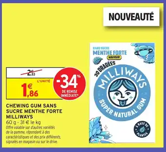 MILLIWAYS Chewing gum sans sucre menthe forte : offres et promos Intermarché Hyper à découvrir